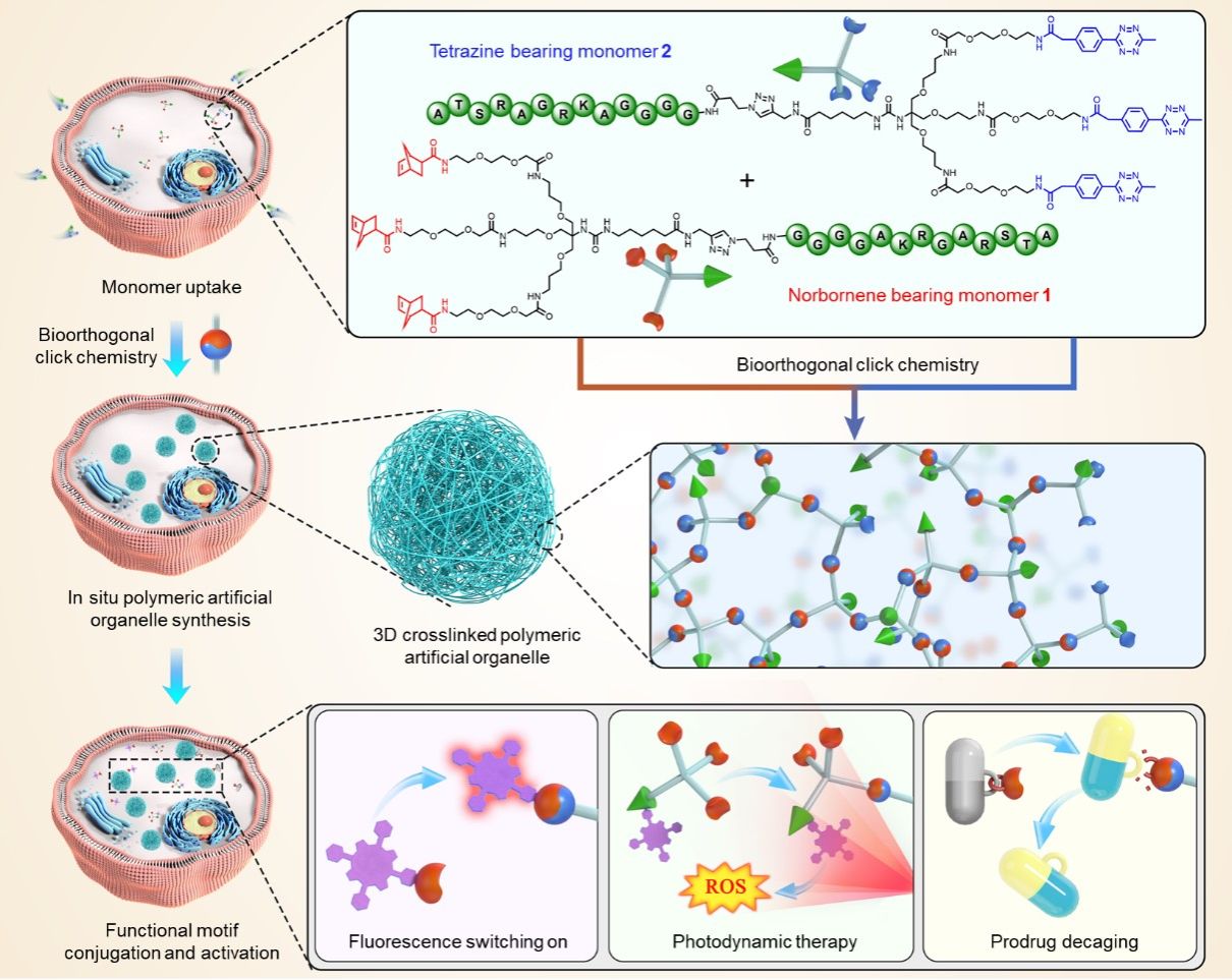 Nhóm nghiên cứu tiếp tục sử dụng các trung tâm phản ứng tetrazine dư thừa trên bề mặt của các bào quan nhân tạo để đạt được một loạt chức năng phi tự nhiên, bao gồm chiếu sáng các phân tử có nhãn huỳnh quang bị dập tắt, ghép nối các chất cảm quang cho liệu pháp quang động và giải phóng không giới hạn các sản phẩm điều trị khối u Kết quả cho thấy việc đưa các phân tử huỳnh quang dập tắt có thể đạt được sự đánh dấu huỳnh quang có chọn lọc đối với các tế bào chứa bào quan nhân tạo; các bào quan nhân tạo kết hợp với chất cảm quang có thể làm giảm đáng kể hoạt động của tế bào khối u dưới ánh sáng 630 nm; Các tiền chất được lồng vào sẽ kích hoạt phản ứng cộng và loại bỏ tetrazine-dienophile trên bề mặt các bào quan nhân tạo, giải phóng doxorubicin để ức chế hoạt động của tế bào khối u Nghiên cứu này cho thấy các trung tâm hoạt động hóa w88 moi nhat nhấp chuột được nạp vào các bào quan nhân tạo có độ ổn định cao hơn và thời gian cư trú nội bào lâu hơn so với các dạng phân tử nhỏ, mang lại nhiều khả năng hơn cho nghiên cứu và ứng dụng liên quan đến sinh w88 moi nhat hóa w88 moi nhat trong chẩn đoán và điều trị bệnh